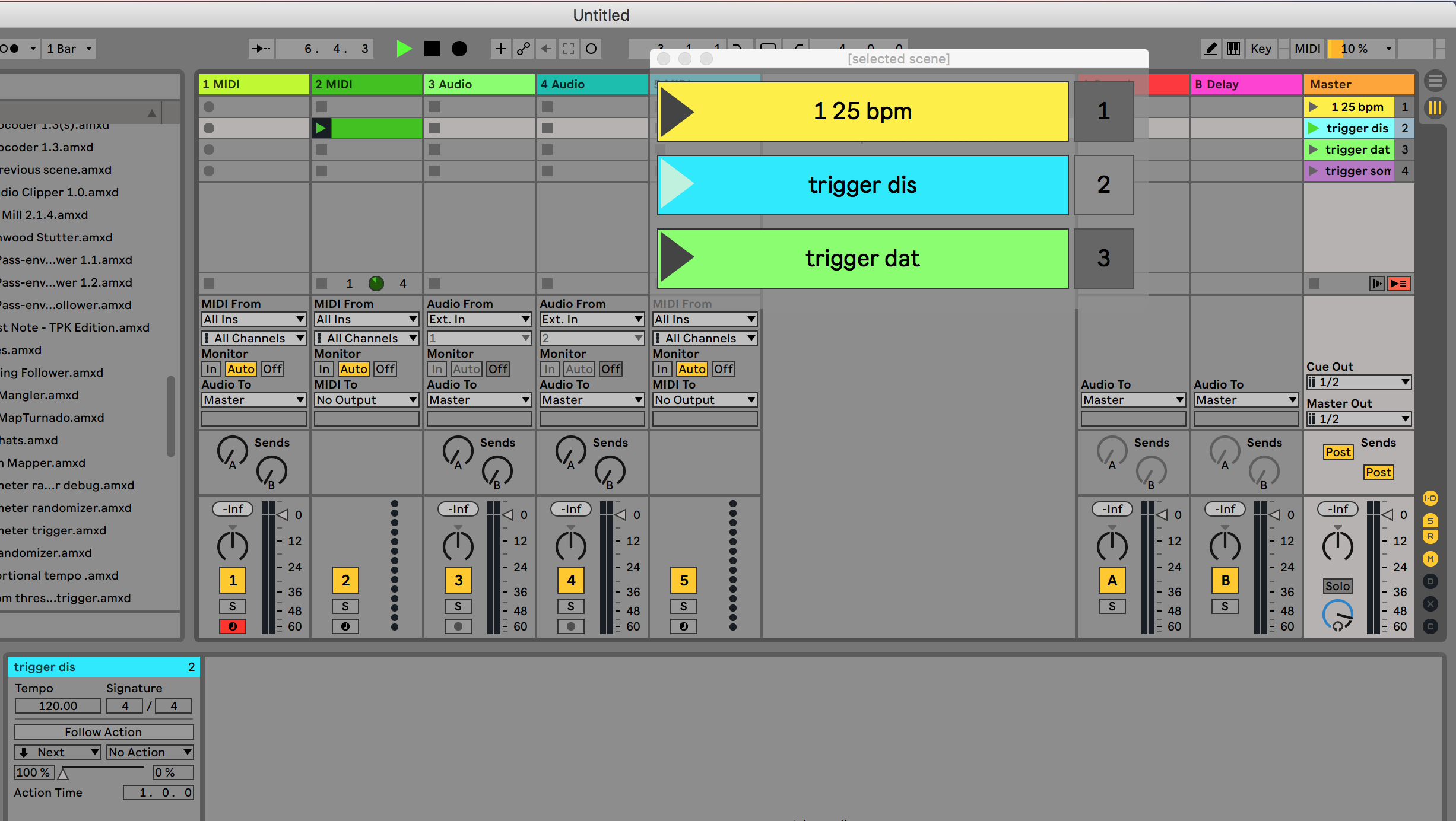 | Description: | Very simple device that monitors your selected scene (+ the next and previous one) in a floating window. As a bonus there's also mappable play-buttons included (for triggering the currently selected, previous and next scene), essentially making it a big floaty version of your scene view. |