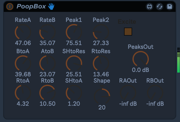 | Description: | This is an emulation of the legendary Hordijk Blippoo box. It makes chaotic beeps and boops and gastric sounds using feedback. Update: filter feedback fix, works better with multiple instances. minimal sound change For more info check out this awesome paper: https://direct.mit.edu/lmj/article/doi/10.1162/lmj.2009.19.35/69833/The-Blippoo-Box-A-Chaotic-Electronic-Music if you like this plugin, please donate: https://www.paypal.com/donate?hosted_button_id=GRN7X2DQQQVCW |