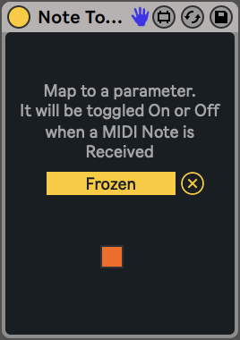 Description: Allows you to toggle on/off a mapped parameter with incoming MIDI note ons/offs. Is meant for toggling buttons/parameters.