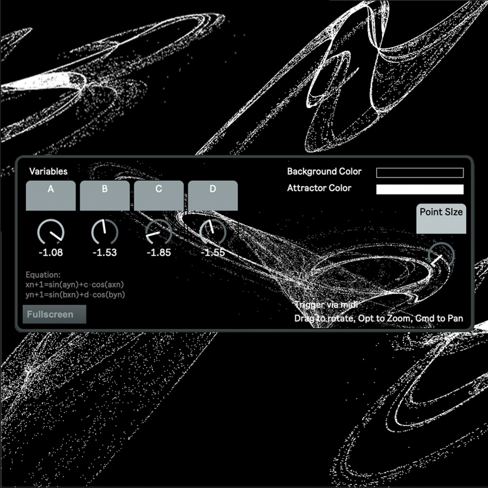 | Description: | Iris Devices Fractal Dream is a free Ableton Visualizer inspired by the fractal dream strange attractor and its equations. New animations are triggered via incoming midi notes, and four parameters can be modified to alter the form of the resulting image. The song used in the demo video is titled natural pairing and is on Iris S-02 SoundCloud |