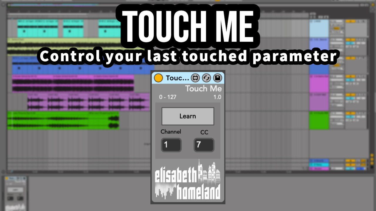| Description: | Touch me is a Free MaxForLive device that lets you map your midi controller to the last touched parameter in Ableton Live. Links: http://www.elisabethhomeland.com https://youtu.be/2oMFhVvceU0 USAGE: You can assign a MIDI fader/knob to always follow and control the last touched/selected parameter in your project. Just press the „Learn” button, and move a fader/knob of your controller. This is a good solution if you like writing automation with a controller but you don’t want to MIDI map the parameters every single time. The download contains two devices: one that good for „Absolute” CC-s (if your controller sends out values between 0-127) and an „Endless” version. (if your controller only sends out two values) DISCLAIMER: - These are MaxForLive devices so you’re gonna need either Live suite, or Live standard with MaxForLive. INSTALLATION : you can put these devices into your user library, basically anywhere. Default location of the User Library: When you install Live for the first time, the User Library is created at this location: Windows: \Users\[username]\Documents\Ableton\User Library Mac: Macintosh HD/Users/[username]/Music/Ableton/User Library Please note that Live has to analyse your user library after you put your devices in there... It could take a while. For the time being, you can just drag and drop these devices on your track from your user library. until Live analyses your folders. Contact: If you have any questions or difficulties with the device feel free to write me at :elisabethhomeland@gmail.com Or you can find me in Twitter: https://twitter.com/ElisabethHom Have Fun!☺ |