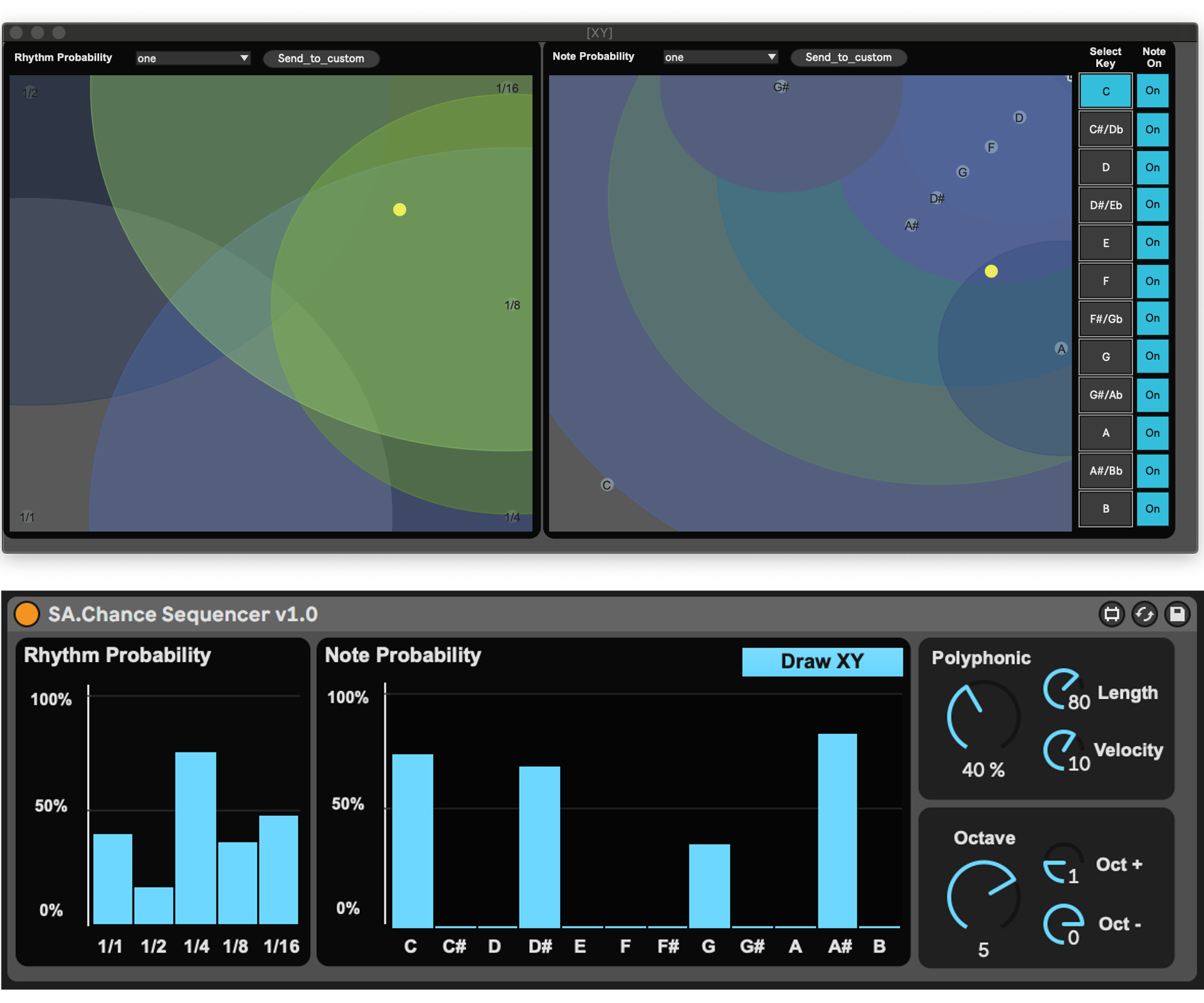 | Description: | Chance is a Max for Live sequencer that creates random musical ideas the way a musician would improvise on an instrument. You act as the conductor, giving constraint to the rhythm and pitch. Chance then improvises within those constraints generating complex, musical ideas. https://youtu.be/v8nRQ_kkUrs Control the probability of notes and rhythms to create complex, improvised ideas. Move a slider up to have it play more often, move it down to play less often. You can play this sequencer like an instrument by clicking “Draw XY”. This opens a pop up window enabling control of multiple note probabilities at the same time, making you the conductor of complex musical ideas. Select a preset from the drop down or create and save your own custom preset. |
