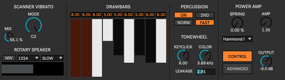 Very nice! A different approach than my Bertha https://maxforlive.com/library/device/1666/ck-bertha and probably more focused on Hammonds - quite like your rotary speaker here.