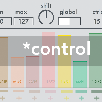 | Description: | *control is is a MIDI effect consisting of 15 individual sliders. The sliders can be indvidually mapped to any control parameter in the DAW session. The total range of the mapped parameter is captured and set by default; the minimum and maximum values can also be adjusted manually. The sliders can be set to continuous individual random movement; furthermore a chosen group of sliders can be shifted to 'tilt' in one direction. Demo Video (Teaser): https://youtu.be/XT0uxRAMz-Q Further documentation can be found in the Max for Live device if Ableton Live´s Help View is turned on. |