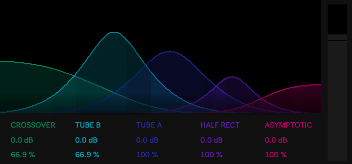 | Description: | This is my take on a parallel band saturation plugin with a similar name. I quite like the dev of the original, so again, not trying to harm their business in any way, I just thought it is an interesting concept, and would make for a fun project. Plus it is free. I also have no intention on building this out further to include all of the MS/stereo features of the original. So what is it? Basically, it is parallel EQ bands, and for each, the resulting signal is subtracted from the original to create a difference signal (or a signal that is exclusively the area under the curve of that band). Building on this concept, this creates shelves and bells (gaussian curves) that isolate the signal in that band, similar to crossover filters (BPFs), only, with the more gradual shapes of the bells and shelves. Each band can be boosted into its own saturation circuit, and finally, is summed back with the dry signal. With this architecture, only the boosted parts of the signal are saturated, and naturally, you can emphasis different frequency response of the saturation. Saturation Algorithms: Tube A - This is a polynomial waveshaper that creates a balance of even and odd harmonics. The original was tuned to sound similar to a Leslie 122 amp, but this has been modified, replacing the output section with a simplified hysteresis model, intended to capture some of the magnetic affects of the output transformer in a tube amp. I find this model to be pleasantly round, gentle and woofy. Tube B - This is an asymmetric trigonometric waveshaper built on two tanh() functions that respond differently above and below the zero crossing. This is much crisper and buzzier, and when driven, can cut off a section of one of the peaks. Crossover - This models the crossover distortion of a class B amplifier. This is probably my second favourite algo (after Tube A). I like it a lot on high and mid-high frequencies to add a bit of grit or fuzz. Tanh() - Vanilla hyperbolic tangent waveshaper, probably the most common of all saturation algorithms. It smoothly rolls off signal approaching the boundaries (-1, 1) and squares off to produce odd harmonics when driven. It sounds quite rounded and pleasant, and is also very CPU efficient. Asymptotic Limiting - This is another odd-symmetrical waveshaping function, similarly shaped to tanh(), however, it is even gentler and more rounded, offering more headroom than tanh() for the same gain. Hard Clipping - What it says on the can. It lops off the peaks. This on is x4 oversampled to reduce aliasing. It's a little buzzy at higher gains, but sometimes can be exactly what you need. This is especially true when you want to shave some spikes off of highly transient program material, be it drums, or even a full mix. Wave Folding - When the peak is passed the -1,1 amplitude threshold, it is reflected back onto itself, with the folded section being inverted. This creates very sharp transition regions at the reflection boundaries, making for a very crispy distortion. Again, utilized x4 oversampling to try and combat aliasing for this one. Full-wave Rectifier - This takes the absolute value of the signal. In practice, this means the negative portion of the signal is flipped positive, the way a full bridge rectifier would do in hardware. This time, the reflection boundary is around the 0 axis, and forms a similarly sharp transition that creates lots of high frequency harmonics. Half-wave Rectifier - This is equivalent to a single diode rectifier. That is to say, the negative portion of the signal isn't flipped this time, it is just discarded. This shouldn't produce as many higher order harmonics as the full-wave rectifier, and it excels at creating even order harmonics due to the asymmetrical mangling. Band controls: Each band can be moved left and right (frequency axis), boosted, or have the Q/slope changed via the normal Ableton EQ control methods. For each band, an input gain can be applied to boost into the saturation stage (post difference EQ). There are also band-level mix parameters to pocket the saturation signals into the dry signal. Bugs: When loading the device the first time (dropping into the rack), the graphical EQ GUI doesn't show up correctly. There are a lot of overlapping transparent layers that don't seem to load properly, but clicking it to drag up a band seems to correct this. CPU usage is also on the higher side. Anyone with an underpowered system (such as mine) may want to test it out first before "paying" for it (if that's something you were considering). I'd prefer to know that it is stable on your system before you drop any money. There are ways to donate afterwards if you are so inclined. And of course, this is completely optional! It is completely free to use for anyone who wants to! |