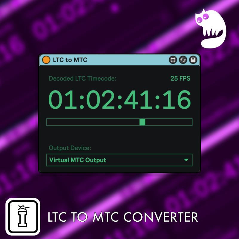 The LTC to MTC Converter decodes the SMPTE timecode and frame rate embedded in an audio track and outputs it as MIDI Timecode to a device of your choice. Just drop the device on your timecode track and you‘re good to go. PLEASE NOTE: Mac OS Only as described below. Using this tool, you can sync other DAWs like Pro Tools or Logic Pro to your Ableton Live session, enabling you, for example, to create a soundtrack for a movie in Ableton Live while editing its dialogue and foley in Pro Tools or Logic Pro. The LTC to MTC Converter MaxforLive Devi ce for Ableton Live automatically creates a virtual local MIDI device that you can use to send the MTC signal directly to any application on your computer. The generated MTC signal can also be sent to external MIDI devices like light desks to synchronize them to your Live session. To generate LTC audio files, use the free ElTeeSee tool: https://elteesee.pehrhovey.net/ The converter supports 24, 25, 29.97, and 30 FPS. |