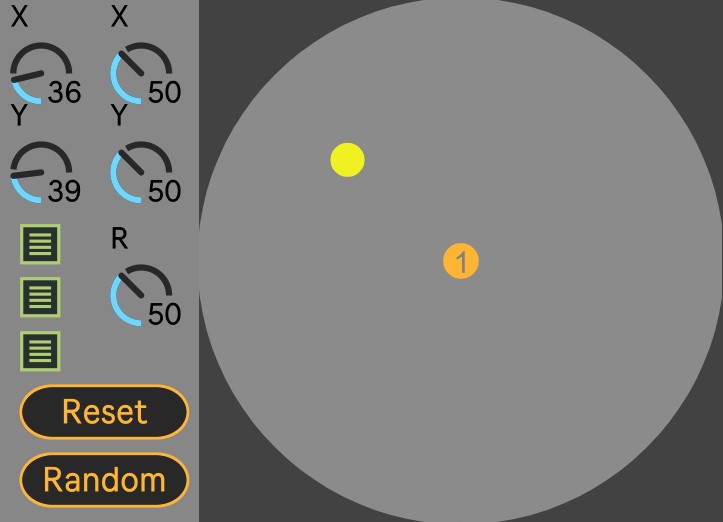| Description: | This is a simple device created to map different parameters to it, allowing for a gestural approach to modulation. It creates interesting results when paired with LFOs of different kinds. |