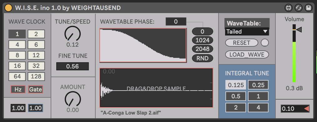 | Device File: | W.I.S.E.ino 1.0 by WEIGHTAUSEND.amxd |