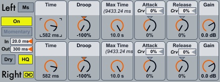 | Description: | This is a robotize / bouncing-ball effect on steroids. Version 1.1 adds interpolation to the delays so that you can adjust the times without zipper noise. (this is set using the HQ button) You can use UltraComb for comb-filtering, but you can also treat it as a bank of up to 32 delays that you can order in accelerating or decelerating fashion. Use the max time knob to set how many of the delays you listen to, and the attack and release knobs to contour the volumes of the taps. Typically, comb-filters use feedback to create resonance. UltraComb, however, just uses lots of taps on a delay line, so you can have very resonant delays that stop immediately after the specified max time. Because the taps are discrete, you can create patterns that fade in and out as well. Use: This device really shines on percussive material, but you can use it on anything. It also has in/out and momentary switches with separate ramps for on and off, so it's great for adding color / delays to a track temporarily. Documentation (!) available on the website. Check out my other devices here: http://www.maxforlive.com/library/index.php?by=author&q=PeterMcCulloch&submit=Search Follow me on Facebook: http://www.facebook.com/subtlesonic |