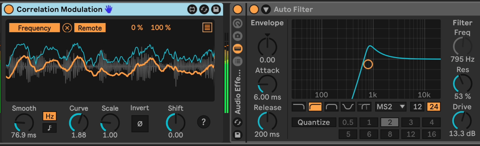 Description: Correlation Modulation is a Max for Live device that allows you to use the stereo left/right phase correlation as a modulation source.