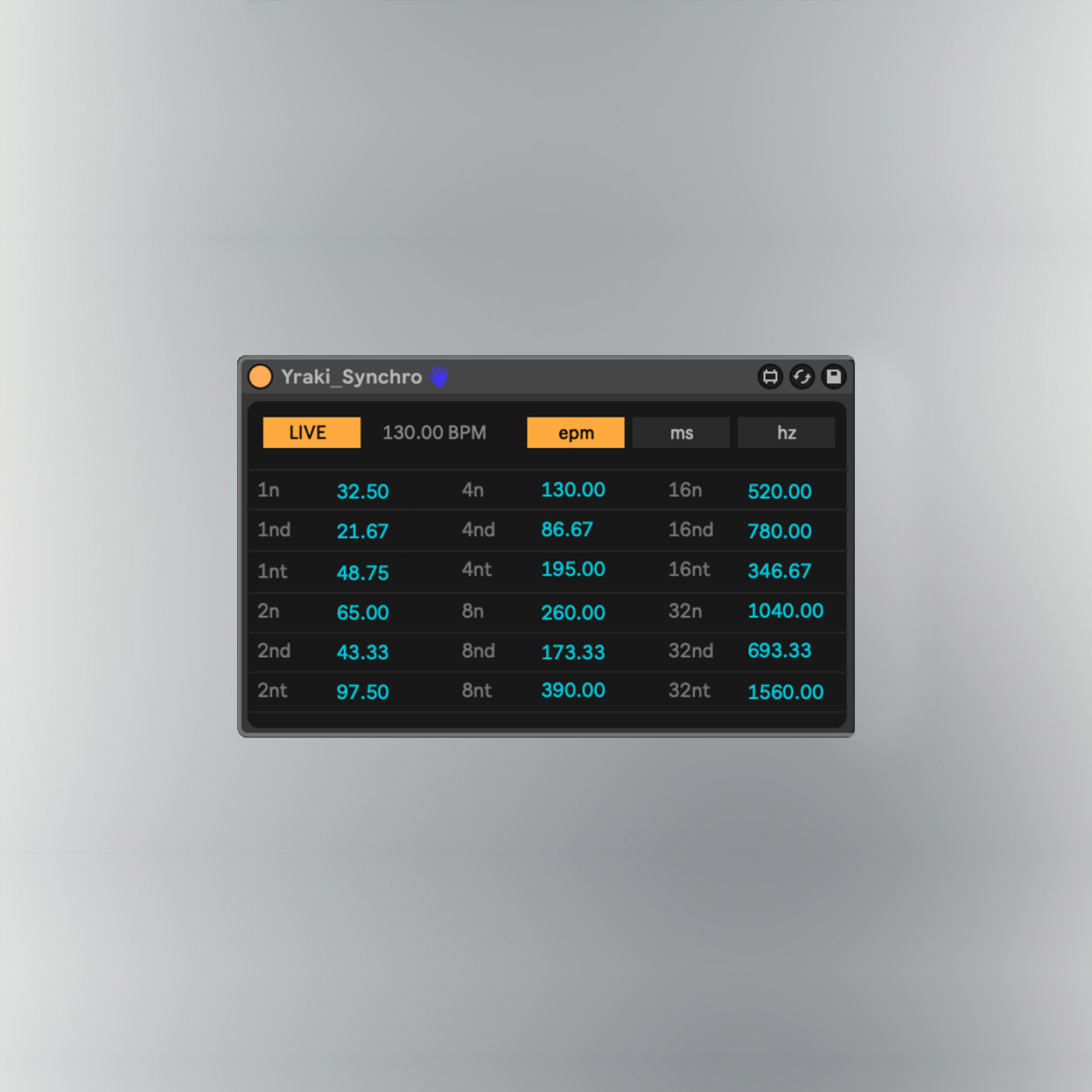 | Description: | Here is a new M4L audio effect device I've been working on! It doesn't produce or manipulate audio, but it performs calculations that are useful for exploring tempo divisions in milliseconds (ms), hertz (hz), and events per minute (epm). Now, I know there are already tools out there that can convert BPM to ms and hz, but the main feature of this device is the epm. I was inspired to develop this concept after watching this video discussing polyrhythmic mixing: https://www.youtube.com/watch?v=Vd28AO5j81s&list=PLnZOad80R4nqnAtwaPIvN1mjeJZsPM0Gm When blending rhythms at various tempos, one may encounter situations where a track set at, for instance, 120 BPM equates to 120 events per minute if considering quarter notes. However, these 120 events could also represent different subdivisions of another BPM, such as 1/8nd or 1/4nt, and so forth. Essentially, the epm page of the device displays the results of such calculations, allowing artists to delve into intricate tempo blends, similar to what's demonstrated in the YouTube video. Shout out to Alex Mesker for the help! Hope you enjoy it IG: https://www.instagram.com/y.r.a.k.i SC: https://soundcloud.com/yraki TW: https://twitter.com/yraki_music |