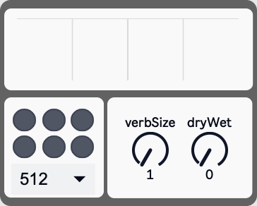 This is a reverb based on the fftEQ help file. Adds a very "y2k" sounding springy reverb. The six buttons correspond to different FFT processes to change the eq of the reverb.