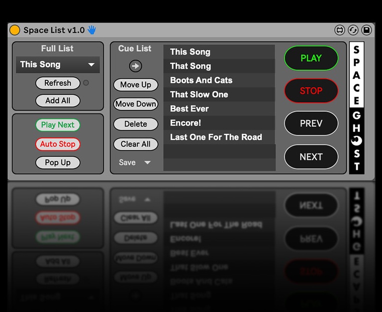 | Description: | Space List allows you to create, manage and control setlists in Ableton arrangement view. It makes playback easy and intuitive for your live performance. - Organize your songs in a set list and jump around your timeline instantly. - Program and automate transitions between songs. - Save presets and archive set lists. - Midi mapping for easy control. - Pop up window for better visibility and flexibility. - Compatible with Push. Check out demo: https://youtu.be/xtgDeAdeAFA |