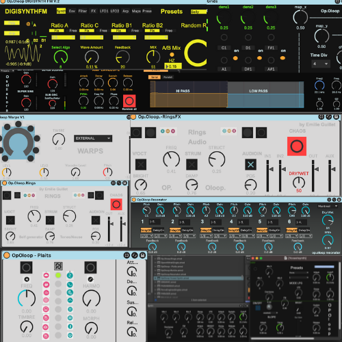 | Description: | 11 Op.Oloop devices, in one file, one shot!!! From Rhythmic LFOS, Drum Machine, Resonator, Super 7 Synth, Clouds, DIGSYNTH V.2 , Elements, Pad Synth, Rings, Plaits, Ycoast Synth See: https://www.youtube.com/@OpOloop-tg2rb |