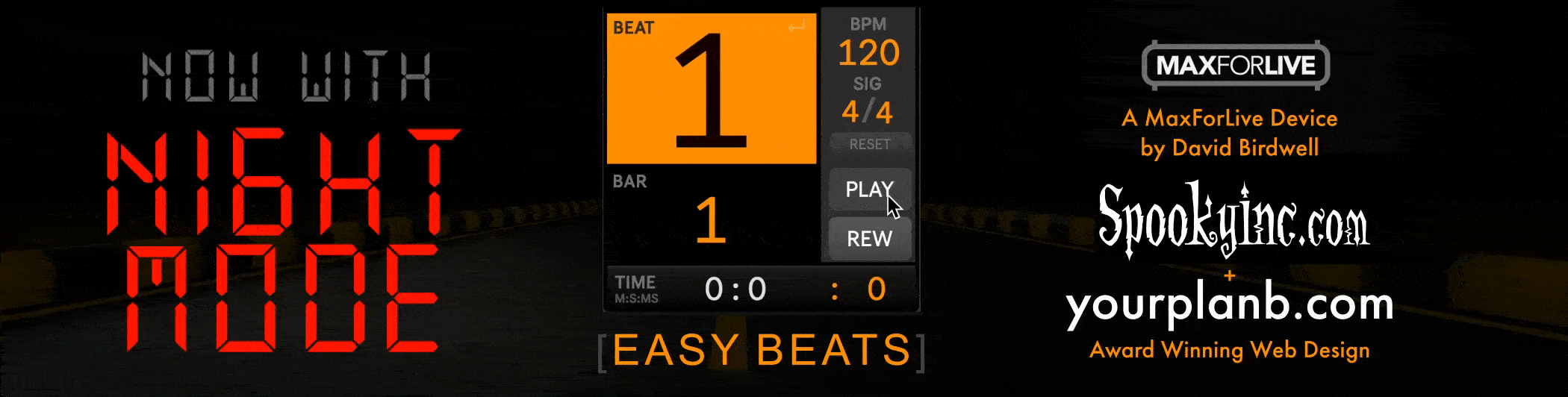 | Description: | EASY BEATS v01 Audio Max For Live device Built for Ableton 12.2, Easy Beats is our next large text, easy to read Audio MaxForLive Device that is a perfect match with our popular midi M4L Device “Easy Monitor” but it works on Midi or Audio tracks! With a focus on accessibility, you can easily read the beats and bars at any zoom level! You can even collapse the side panel to make the device even more narrow if all you need is the basics without taking up much real estate with all your other filters and devices. Recording some stems for your producer? Playing guitar, piano or maybe singing but you can't be near your computer? EASY BEATS (and EASY MONITOR) is your answer. View and adjust the Time Signature AND the Tempo (BPM) directly from EASY BEATS expanded view. Need to sync up with Video? We’ve included a visual Time counter as well - Minutes / Seconds / Milliseconds. We also included a Midi Mappable PLAY/PAUSE button and REWIND buttons to take you back to the beginning of your entire Set (while playing or Paused). And for fans of our NIGHTSERIES of Devices, just click on the Beat number and everything turns red for nighttime viewing, or just because it looks AWESOME with our NIGHT devices. And as with many our devices, just click the RESET button to return to the defaults. |