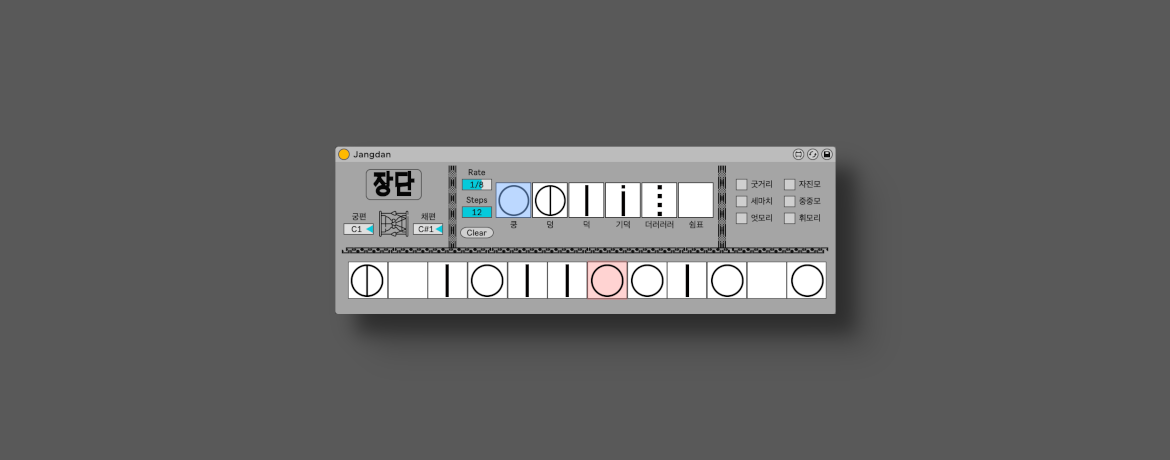 | Description: | Jangdan is a Max for Live MIDI device inspired by the rich rhythmic traditions of gugak (traditional Korean music). All proceeds from this device are donated to the Arts and Culture Programs at The Korea Society. Key Features: - Unique sequencing using jeongganbo notation, a historic system used to transcribe jangdan for the janggu, an hour-glass shaped Korean drum. Each square represents a beat, and notation symbols indicate specific playing techniques. - Preset system to save and load your patterns. - Menu to load traditional Korean rhythm sequences. - Fully optimized for Ableton Push controllers. Compatibility: - Requires Ableton Live 11/12 Standard (with the Max for Live add-on) or Ableton Live Suite. |