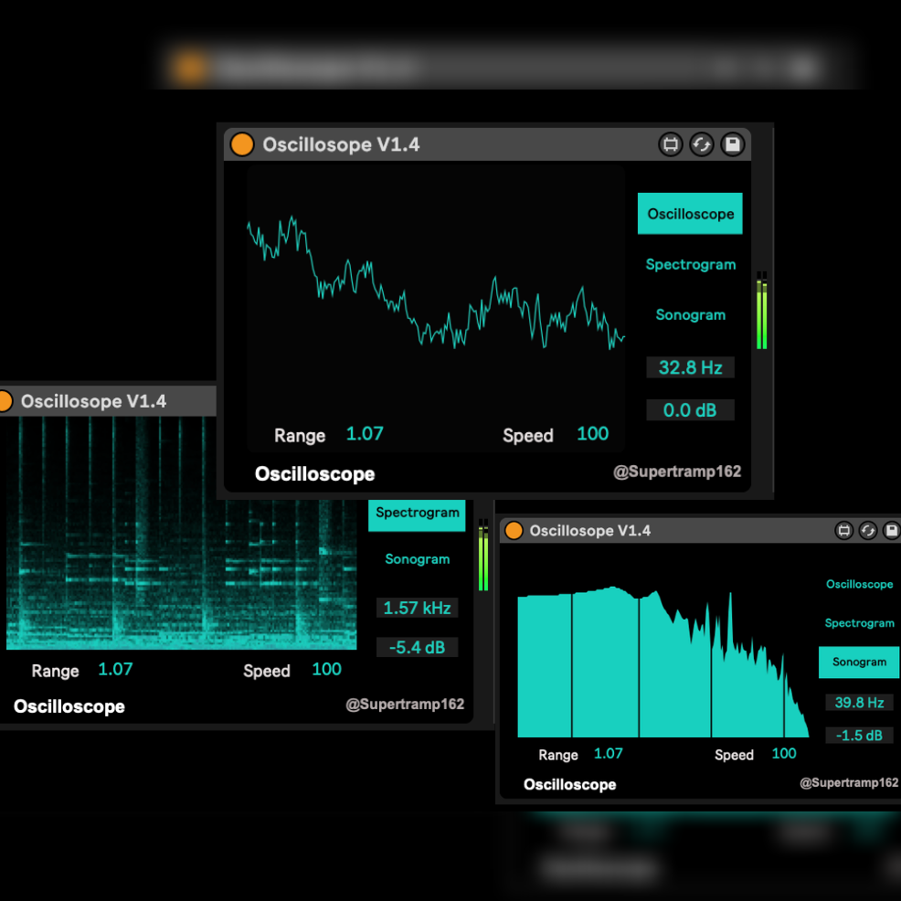 | Description: | Oscilloscope is a Max for Live device designed for Ableton Live by Stephen Black, to visualise and analyse audio signals. It provides visual feedback of audio waveforms, allowing users to observe the shape and dynamics of their sound signals in real-time. Updates include speed and range controls, the addition of amplitude and frequency data, as well as Sonogram and spectroscope modes to further display visual representations of audio. If you like my work and wish to collaborate or contact me, the best place to do so is through my instagram @supertramp162. https://linktr.ee/supertramp162 |
