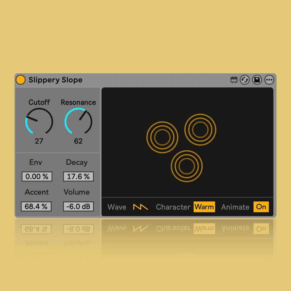 | Description: | V1.1 added microtonality support and will work with ableton tunings or microtuner. Slippery Slope is a single oscillator, mono acid-bassline synth voice.Paired with Sting, it creates an acid ecosystem for Ableton Live or Push Standalone. It’s designed to let Sting speak in its first language, though it works just as well with any other MIDI source. It features a simple interface with familiar controls and nice animations, which can be turned off for better focus. All of Slippery Slope’s parameters are logically laid out and fully controllable via tabbing making it accessible to blind, visually impaired, and sighted users. Slippery Slope is available as either a free or paid download. Both versions are identical; it's simply a way to ensure that everyone can access it, regardless of their ability to support my work. |