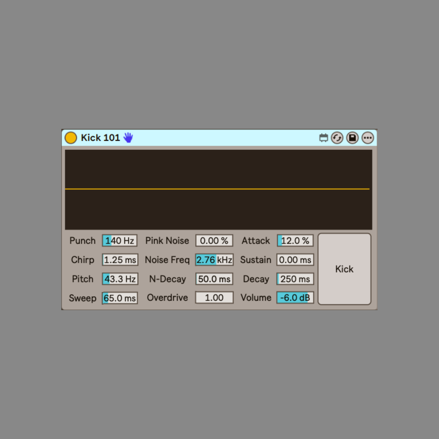| Description: | Kick 101 — an updated take on Telefon Tel Aviv’s Max For Live device "Kickdrum 101". New UI, extended decay/sustain/sweep ranges, plus noise and volume control. Ableton blog article: https://www.ableton.com/en/blog/telefon-tel-aviv-shifting-time/ |