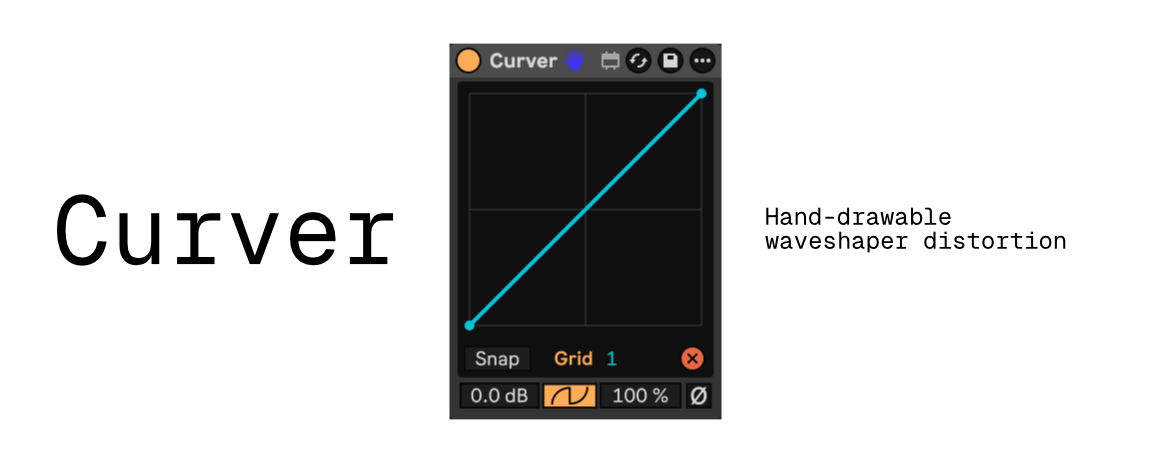 | Description: | "Curver" is hand-drawable waveshaper distortion. simple waveshaper effect with Ableton's Shaper UI. - symmetric / asymmetric distortion. - ON / OFF snap with grid. 2025/11/16 - v1.0.1 - Fixed an issue where placing two or more devices caused distortion along the same curve. 2025/11/26 - v1.0.2 - FIX LOSING MEMORIES OF SHAPE AFTER PROJECT CLOSE. |