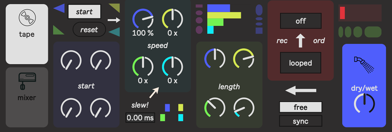 | Description: | at its core, quartet is a looper—albeit a strange one. quartet takes a single recording of audio and layers up to four simultaneous loops. adjust each loop's speed, start point, and length to create textures that evolve seemingly endlessly. as loops of different lengths cycle, they phase against each other in free-form organic drift or tempo-synced polyrhythmic patterns. throw in drum grooves for frenetic breakbeat jazz or layer sustained tones for pulsating drones. built-in digital degradation adds crunch and texture. mix each loop with independent volume and pan control to craft entire compositions. influences: tape music, steve reich, oval, editions mego, huerco s., tim hecker, kmru note: quartet operates on a temporary buffer which is not saved upon closing the device. treat your performance as a live moment—record and resample religiously 🙏. credits: shout out to Philip Meyer's UI overhaul and update of the oual_qroccss patch. the fx section of quartet riffs off of elements of oual_qroccss and @p__meyer's breakdown video inspired me to finish this patch! |