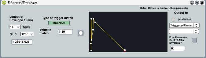 | Description: | Actually, a line segment function controller: make an envelope, chose time length of envelope, chose note number or controller number whose non zero value (note on) will trigger envelope, assign to a parameter, choose if you want to free parameter after envelope...have fun! check out triggered dual envelope... |