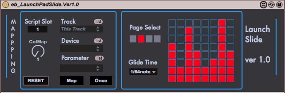 | Description: | This device turn your launchpad User 2 mode into 4 banks of eight sliders to control Rack Macros throughout your set. There is a mapping section to the left with a few different options. You can select via the menus, or turn 'Map' on to click macros and automatically map them. You can use multiple instances of this device to get more than 1 bank, which are assigned to the arrow keys on the launchpad. Each page has it's own color. You can use this with multiple launchpads, by selecting the appropriate script slot. You can adjust the glide time with the eight scene launch buttons. Currently, this works on macros only, but I will soon open it up to all parameters. Enjoy! |
