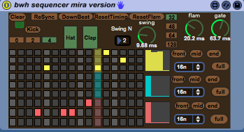 A three part sequencer for use in Ableton that utilises the Mira package. You can still run it without Mira - but it's just very tiny.