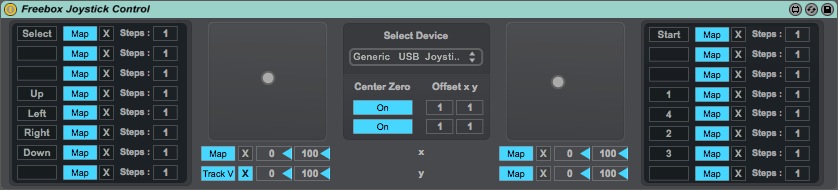 | Description: | Ce device permet de controler la manette normalement inclue dans votre pack freebox ADSL et d'y affecter des controles dans Live. Le mode "Analog" doit etre actif sur la manette. Attention, je possede deux manettes, et j'ai remarque qu'elles n'etaient pas reconnues de la meme facon. Si le peripherique "Generic USB Joystick" selectionne par defaut dans la liste ne fonctionne pas, essayez celui appele "USB Joystick" Mode de controle pour les boutons avec le controle du nombre de pas: - Step 1: classique instantane on / off - Step 2: interupteur marche / arret classique - Step 3 a 127: changer le parametre selon le nombre de pas selectionnes, par exemple pour modifier les valeurs de potentiometres, de menus, ou boutons a positions multipes... Center Zero : une fois actif, cela permet de faire revenir le parametre du controleur sur 0 lorsque le joystick est au centre au repos. Autrement, le joystick rejoint la valeur mediane du controleur au repos. Offset XY : Certains joysticks ont une valeur au repos qui n'est pas egale a zero, les valeurs Offset pour les axes X et Y permettent de corriger cela et retrouver la valeur zero. ///////////////// This is a device to interface the Freebox Gamepad that you normally get for free in your Freebox ADSL pack. "Analog" mode should be activated on the gamepad I noticed 2 versions of the Gamepad, so if the selected "Generic USB Joystick" device in the menu doesn't work, try the another one called "USB Joystick" Control mode for buttons with steps control : - steps 1 : classic instant on/off - steps 2 : classic toggle on/off - steps 3 to 127 : change the parameter according to the number of steps selected, for example to change the time delay between multiple values. Zero Center: Once activated, this allows to set the parameter of the controller to 0 when the joystick is come back to the center. Otherwise, the joystick joined the median value of the controller at rest. XY offset: Some joysticks have a value that is not equal to zero when released, the offset values for the X and Y axes can correct this. |