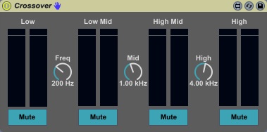 Simple 4 band crossover device with mute buttons for making multiband effect racks. More features to be added once I figure out how to add them.