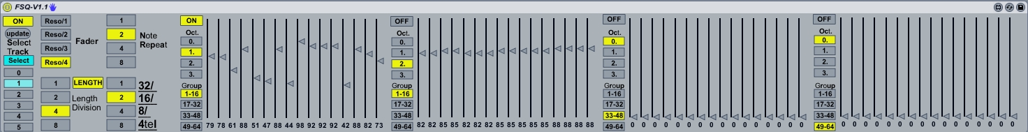 | Description: | Describtion: Each fader edit 1 2 4 or 8 steps... all togehter 64 Fader can be remotet via Midi.... -yep- it is a totally live tool---or a tool too make the basic melodie >>> getting ideas or basslines... with some chords arpegiaters and other cool stuff, it also sounds live very good... so what it makes: + Making Melodies in a "paragrphig eq-style" workflow + Writes Sequences direct in midiclips + Built for Hardware Midicontrollers > My specific controller: http://www.phatline.at/index-Dateien/image014.gif > Works best with 64 pieces of 100mm Fader + Step repeat functions > each Fader repeats a note 1x 2x 4x or 8x + Fader Groups monophonic addition > 16Step, 32Step, 48Step or 64Step moniphonic mode + Fader Groups polyphonic addition > 16Stesp, 32Step - polyphonic mode > 1phonic, 2phonic, 3phonic, 4Phonic mode + Octave shift per Fader group (one Fader group-16Fader) > +1, +2 or +3 Octave mode + Step resolution > 32, 16, 8 or 4th resultion. + automatic loop length mode > Automaticly changes the loop length when resolution or groups are turned on off...and so on + Loop length devision > Devicdes the automatic loop lenght by 1, 2, 4 or 8 + Current/Select Clip-Mode: > Current: the currently selectet clip will be editet > Selectet: the current scene will be editet, the track will be selectet manually + update > sends all data to the selected clip + Fader resolution > Devides the Fader Value by 1, 2, 3 or 4 --- take 4 for finer Resoultion... > By Deviding it spreads the notes values a bit - so you get some very cool effects for . eg. leadsounds... When you have a 64x100mm Fader Midibox ---then you are a lucky live acting guy... When you have multitouch and some skillz you are also a lucky guy.... With mouse it is not so usefull haha rock on! |
