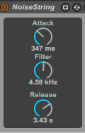 | Description: | A simple play on a noise generator. This is a string synth made from NOISE sculpted with Max for Live for Ableton Live 9 Suite. *Now contains ten preset racks demonstrating the instrument's surprising versatility* |