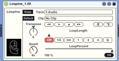 | Description: | Loopina is a Clip looping device. It edits directly Warped Audio and MIDI Clips Loop Start and End Points with just one click. It can be a powerful weapon for Djing with Live, but also for other forms of performing. demo video here : https://www.youtube.com/watch?v=Lr35WH6BxRI |