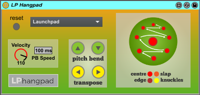 Description: This patch works with Soniccouture’s excellent Pan Drum instrument for Kontakt. Using the Octave map, the patch maps out the Launchpad like a real Hang, making it more intuitive to play. Pitch bend controls and transpose are altered using the top buttons of the Launchpad.