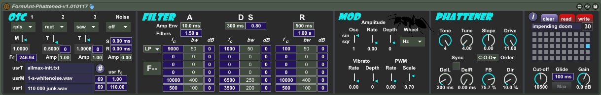 | Description: | This is an update to FormAnt, a six-formant, subtractive monosynth that constitutes part of a long-term, ongoing, university laboratory project. It seeks to use a parallel bank of several band-pass filters (with dynamic control of center frequency, bandwidth, and amplitude, as found in traditional speech synthesizers) to generate simplified models of speech sounds and musical instrument tones for use in psychoacoustic research. The synthesizer also has been developed to be a very responsive and expressive MIDI instrument. A 50-harmonic oscillator bank has been added that permits user-assignable amplitudes for each harmonic via text files that can be generated either independently or easily within the host environment. A small directory of initial text files is provided, as are a few new presets to serve as starter examples of the oscillator bank. Several programming adjustments also have been included to better manage CPU usage. As before, FormAnt is provided within a bundle of devices that include versions with and without complimentary effects. Separate effects racks are provided for use with other devices, as are example presets. Product registration assures technical support for the life of the product, and proposed modifications will be considered. More information about this project and synth can be found at http://www.psyc.jmu.edu/undergraduate/auditoryperception/software.html, where the product bundle also can be downloaded. |