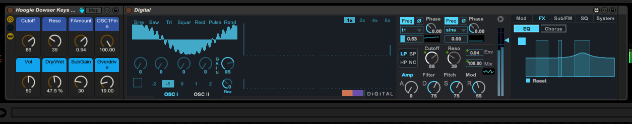 | Description: | Digital by Max for Cats Max for Cats presents DiGiTAL, a powerful polyphonic synth that fuses aspects of additive, wavetable, frequency modulation and subtractive synthesis. DiGiTAL is distinctly designed for creating new sounds and provides a comprehensive set of controls expressly for this purpose. Oscillators DiGiTAL’s two oscillators can produce a vast variety of sounds. Each oscillator’s waveform is mathematically created by additive synthesis and frequency modulation and is then stored in a wavetable which can be modulated itself. Along with presets for standard waveforms, DiGiTAL lets you make your own waveshapes by directly drawing partials, their amplitude, and phase, as well as the frequency modulation and its phase. So, is it additive synthesis? Is it wavetable? Is it FM or subtractive synthesis? It’s all of these and more. Filter / Envelopes / LFO For refining and animating the raw waveforms, DiGiTAL provides a multi-mode filter and two LFOs with seven different waveforms and adjustable phase. Four ADSR envelopes let you shape the amplification, filter, pitch and additional modulation. The pitch envelope has the ability to inverse its action in order to achieve a rising or falling pitch modulation. Additional features DiGiTAL’s sound shaping capabilities go even deeper with a modulation matrix for precisely animating various parameters of your sound. There’s also an onboard chorus and EQ for fattening up and sculpting your sound, a tunable sub-oscillator, extra FM modulation and global saturation/distortion settings – all providing virtually endless potential for creating new sounds. Sequencer Taking inspiration from the vintage Oberheim 2-Voice synthesizer, DiGiTAL comes with a powerful dual-purpose sequencer. While the parameter sequencer is always active and selectable as source in the modulation matrix, activating the note sequencer gives you control over note value, velocity, length and muting per step. The sequencer offers four different playback modes and, like the LFOs, can be free running or synced to the global tempo. In this custom Live Pack, I am offering 25 Instrument Racks & their un-racked synth prototypes. This synth is unashamedly-digital in its sound and the way it goes about making them. This IS NOT a Virtual Analog/VA synth. It does not try to sound analog. A lot of these patches were inspired by classic 80's digital synths while others are Digital takes on analog patches and sounds. There is everything from classic FM/DX-7 Doogie Howser theme electric piano keys (Hoogie Dowser Keys) to Herbie Hancock's ARP 2600 Chameleon bass (Herbie ARP2600 Rack). I hope these patches help you to bolster your Digital arsenal. |