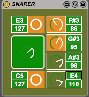 You can choose note number, velocity and trigger point along the curse of the fader.