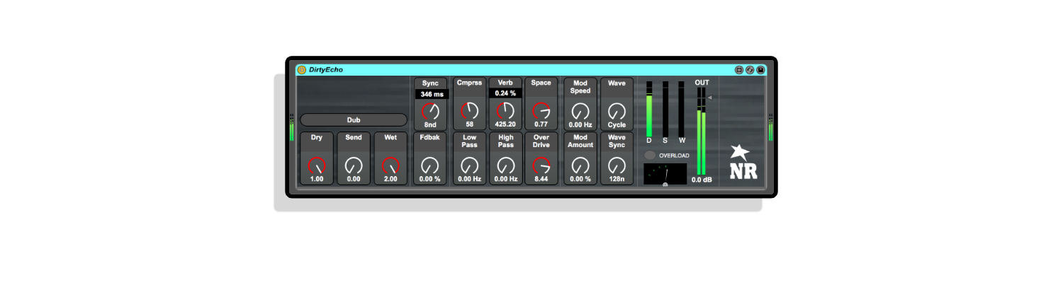 | Description: | It’s Dirty, it’s an Echo, there’s not much to say on this one, it’s best to hear it in action! https://vimeo.com/221644844 Inspired by the sonic experiments of dub reggae, the endless evolving clouds of dirt and howl that come from feeding echoes back into themselves, that classic sound of the Roland Space echo, Dirty Echo seeks to add an extra tone and degree of function and experimentalism to echo sound design in Ableton Live in one unit. You can use the filters to shape the tone of the echoes, add compression to keep control of levels withouth ahving to add more devices, you can achieve dub style effects without using aux tracks by using the send buttons, and you can add extra space using the the built in verb, overdrive, and modulation to the echoes to great sutble wow and flutter or extreme wibbles. Dirty Echo is a homage to the lofi soundscape. |