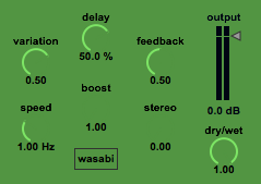 | Description: | Wasabi Flanger is a flanger with a boost.(developed in gen) It provides a stereo flanger plus the Wasabi Boost that gives soft clip to the wet signal and up to 32 dB of gain. Great for giving movement to static sounds, widening the stereo field and adding a distinctive crunch. |