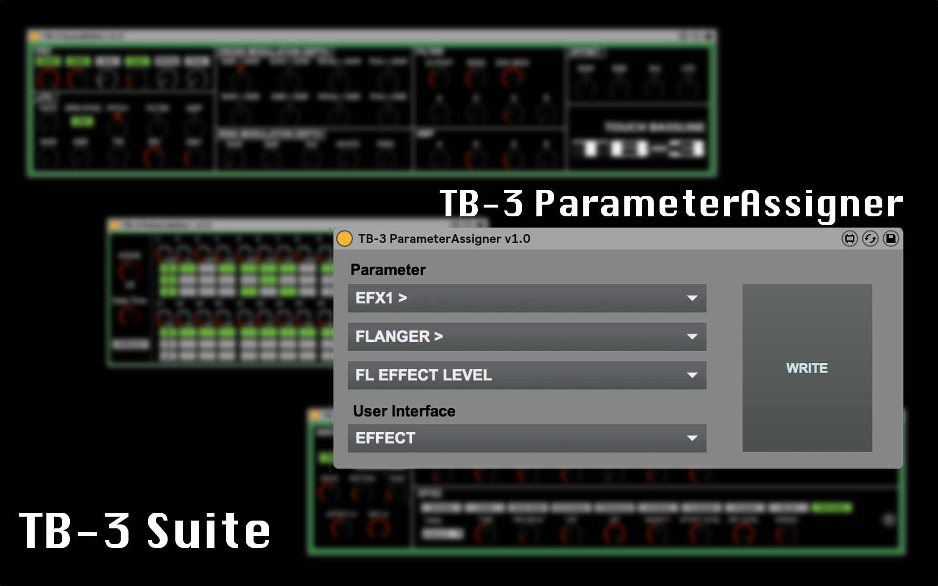 | Description: | You can change assignation of EFFECT knob, XY Pad of Roland AIRA TB-3. First, select a parameter, then select UI(EFFECT, XY Pad) and push WRITE button. v1.0: Initially released v1.0.1: Fixed typos Check TB-3 Suite, TB-3 related devices created by mugenkidou. TB-3 SoundEditor http://www.maxforlive.com/library/device.php?id=4817 TB-3 EffectEditor http://www.maxforlive.com/library/device.php?id=4818 TB-3 PatternEditor http://www.maxforlive.com/library/device.php?id=4819 TB-3 ParameterAssigner http://www.maxforlive.com/library/device.php?id=4820 |