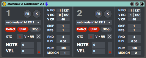 | Description: | This tool generates MIDI from motion captured by micro:bits. I started toying with this idea some years ago, but recently I evolved the plugin to something that allowed me to create Container, Faith Exotica or The Swarm, as well as some excerpts of Vaseline in its first stages, and some live work for Ensemble Topogràfic. This tool has changed my way of making music. I switched thinking about note layering (the more traditional oriented composition) to density/texture/controlled randomness ideas. This plugin works with micro:bits connected through USB serial port, but is easily adaptable to other sensors (myo, leap motion, ipod touch…). Why I use them? They are supercheap, and have a couple of buttons, which enable to control a couple of parameters (pitch bend (PB), mute all notes (K)). With some recent additions, this version is a bit unstable for now. |