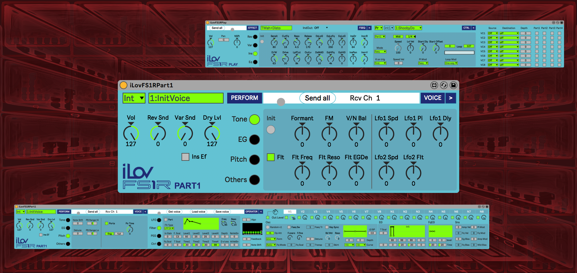 | Description: | iLov FS1R is a Max For Live editor designed to easily control your Yamaha FS1R synthesizer. Creating, editing, and saving your sounds become child's play. iLovFS1R is made of 5 Max for Live midi devices. 4 iLovFS1RPart which control the parameters of each part, selected voices and operators. They enable to control and edit each sound of the 4 FS1R parts on separated midi tracks. They also allow to load and save new voices in your computer. 1 iLovFS1RPlay which contains the effects system, Formant Sequence parameters and the Controllers system. The devices have been designed for you to stay focus on what you are doing. Open the Voice and Operator Editors to get access to the full creative tools that let you design your sound, or, let them closed and just use Performance Part parameters , automate midi tracks and stay focused on the music production. iLov FS1R has been updated !! This update makes knobs colors stable with any Ableton Live theme and fixes some minor bugs. http://ilovmachines.com/product-fs1r.html |
