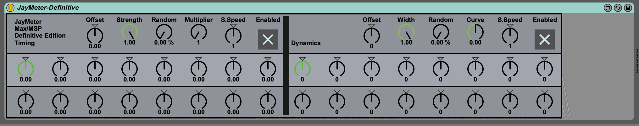 Inspired by the humanized and offbeat sounds of Hip-Hop and IDM productions, JayMeter is a 16-step timing and dynamics sequencer for Ableton Live with Max 4 Live. It is a MIDI effect which does not produce MIDI notes on its own. Rather MIDI notes need to be fed from either Ableton Live's sequencer or external MIDI fed through Ableton Live. JayMeter then transforms the timing and velocity (dynamics) of the MIDI notes.