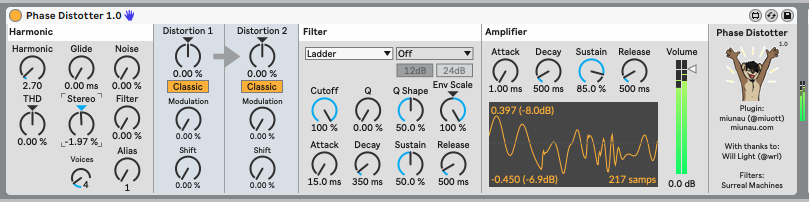 It seems like this device doesn't like changing the number of voices: it's better to type in the number rather than using the knob; and it can Some parameters ranges could benefit a bit of exponential value scaling, to have better control ranges.