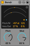 | Description: | Bendr is a very simple and fun device, which breaths some "human error" into your "dead-precise" MIDI. It generates random pitch and modulation wheel movements every time when a new note comes in. You can control the amount of the pitch and mod. wheel random amounts and the width of the bending. ...also, you can go crazy with it! https://www.youtube.com/watch?v=nI8mB20ljSU&feature=youtu.be Version History : 1.o1 - live.banks added, random velocity and note delay added (thanks Alan for the tips!) 2.oo - better Live UI integration 2.o1 - UI glitch fixed, device now follows correctly the selected Live theme 2.o2 - minor tweaks 2.o3 - minor tweaks 2.o4 - Apple silicon check 2.o5 - dynamic UI 2.o6 - Live 12 compatibility check |