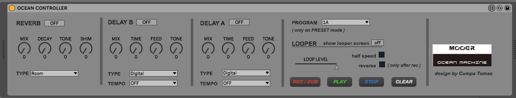 | Description: | Midi Device to control the delay and reverb pedal Mooer Ocean Machine. Sorry to inform there's no way to receive the tempo sync or to control the tap tempo or the bpm settings via midi. And I can't program the exact milliseconds with the device. Maybe someone can help with that! NOTE: Beware of the reverb DECAY control! Somehow it gets stuck if you draw the automation with nodes instead of the pencil mode so as it gets stuck no other automation will respond correctly so you should draw the decay automation with the pencil mode (at least this happens with my Ableton Live 10 version) |