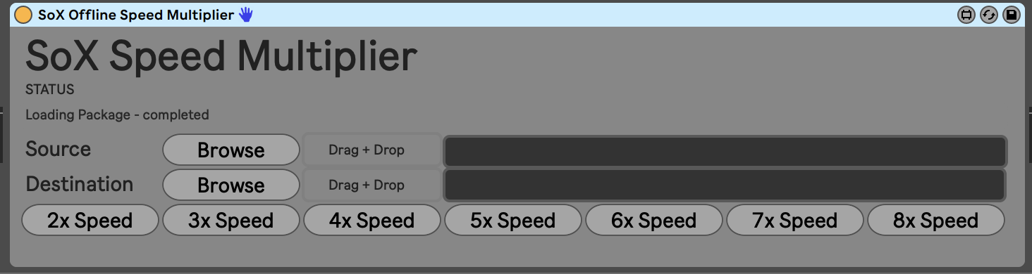 | Description: | Offline Speed Multiplier - An example implementation of controlling SoX - Sound Exchange via N4M (Node For Max) and Max For Live for offline audio file manipulation within Ableton Live. |