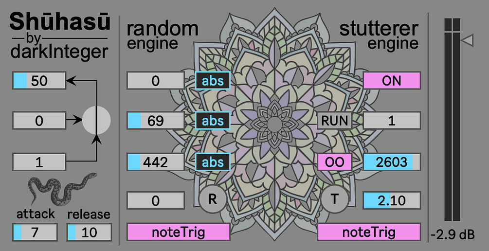 | Description: | Shūhasū is a psychedelic instrument Features: -fm synthesis engine -unique scatterer engine -random engine -trigger buttons for randomizing the engines -note trigger switch for randomizing the engines -stereo mode demo: https://youtu.be/Duk-90FN6pw |