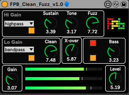 | Description: | Clean Fuzz is a full range 3 band distortion effect by Fingers Push Buttons. It has a High Gain Channel “Fuzz” a Low Gain channel “Clean” and a Bass frequency channel “Bass”. These can be combined to transform the input signal in different ways from subtle compression to total destruction. Listen to it in action here: https://soundcloud.com/fingerspushbuttons/clean-fuzz-max-for-live-effect-demo https://soundcloud.com/fingerspushbuttons/clean-fuzz-demo-2-just-bass/comment-1380573583 50 free copies are all gone still available for just £2 |