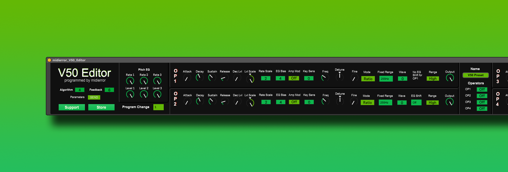 | Description: | This is a Max4Live editor for the V50, which enables you to program every element of the synth and store automated changes. Every parameter is catered for, including pitch EG, positive/negative level scaling and the ability to name your patches. Included in the download are: Install Guide Manual Max4Live AMXD File You can send all of the parameters to the V50 to ensure the gui and synth have corresponding values.The editor also allows for program changes! Once purchased, you can contact me any time using the built in Support button, with questions, ideas and suggestions. If you have any questions about the software, it's functionality or usage please contact me BEFORE purchase, as I can not offer refunds on software downloads. Required Software: Ableton Live 10 and Max4Live (included in Suite version) Required Hardware: Yamaha DX11 Please note: This is not a patch librarian, it will transmit parameter changes to the V50, but the software does not load and save patches. However, you may save your sounds on the V50(as described in the manual) and then save them to your computer. This product is in no way affiliated with or endorsed by Yamaha. |